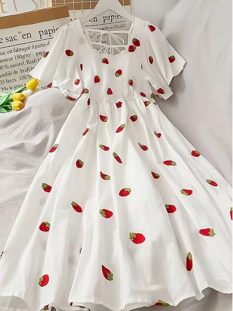 Women'S Cute Forest-Themed A-Line Dress with Ruffle Sleeves-